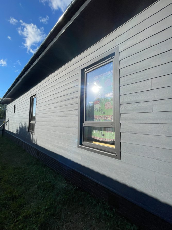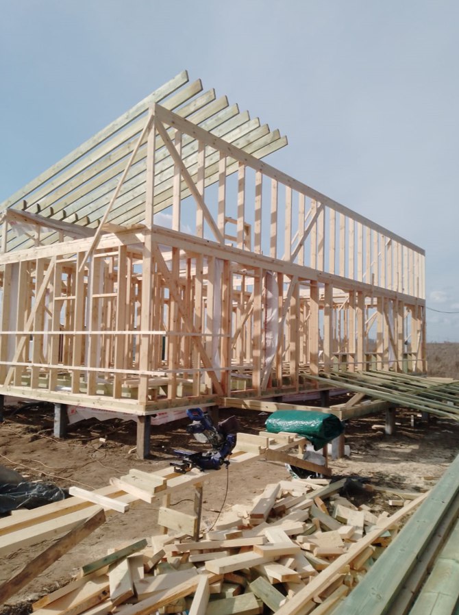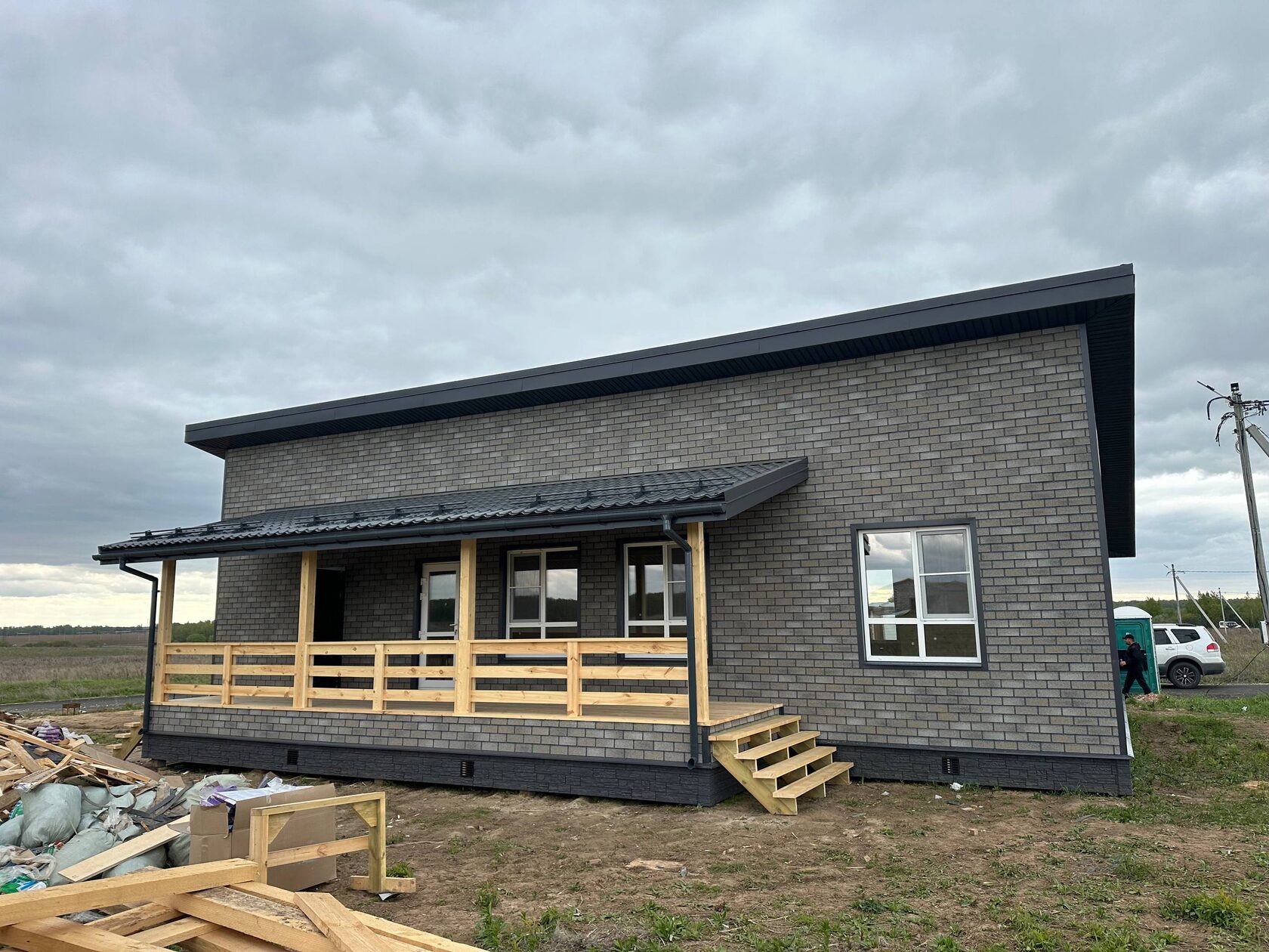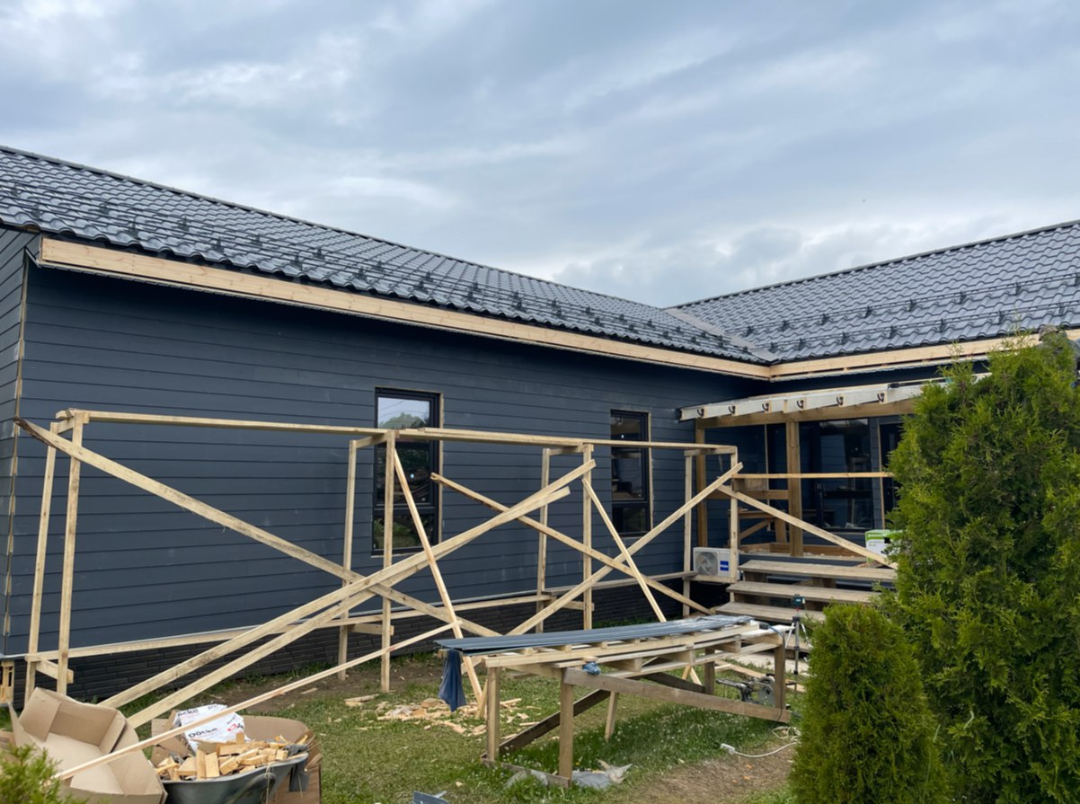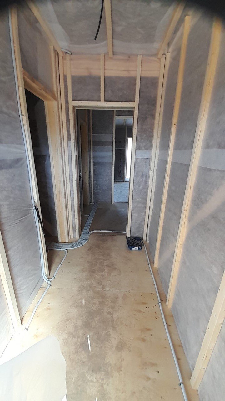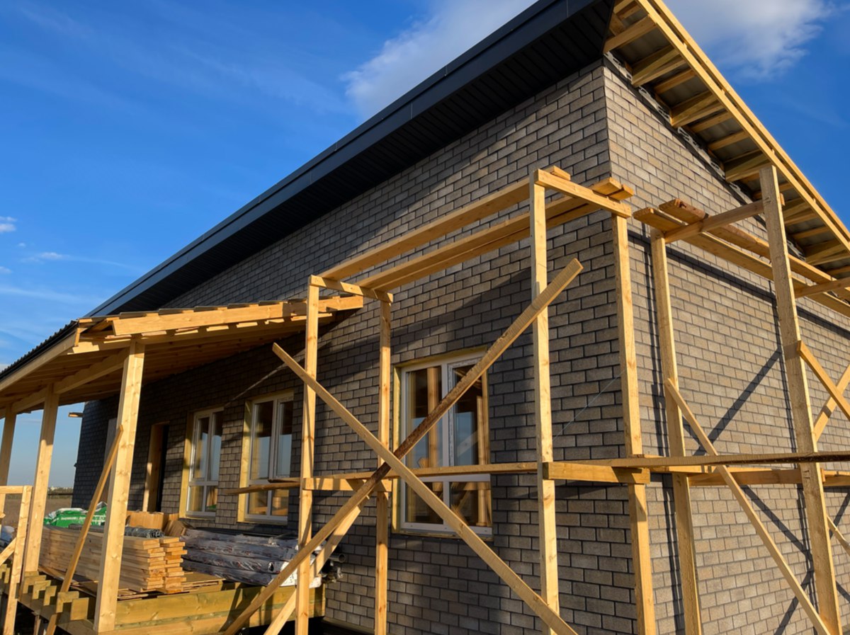 Необходимо было спроектировать дом по типу "Дуплекс" (дом на две семьи), но одна часть жилая, а вторая для работы творческой мастерской. Итог проектирования и строительства в фотоотчёте. Размер: 11,5.0х15.0 Силовой каркас дома: калиброванная доска камерной сушки. Фундамент: ЖБ сваи. Кровля: металлочерепица 0,5мм. Изделия ПВХ: Мелке. Утепление Кнауф: пол 250мм, стены и потолок 200мм. Отделка фасада: HAUBERK коллекция Кирпич, цвет: серо-бежевый. Отделка внутри: Имитация Бруса. Инженерные коммуникации: скважина с обустройством, септик, разводка воды и канализации внутри дома. Все работы произведены за три календарных месяца.