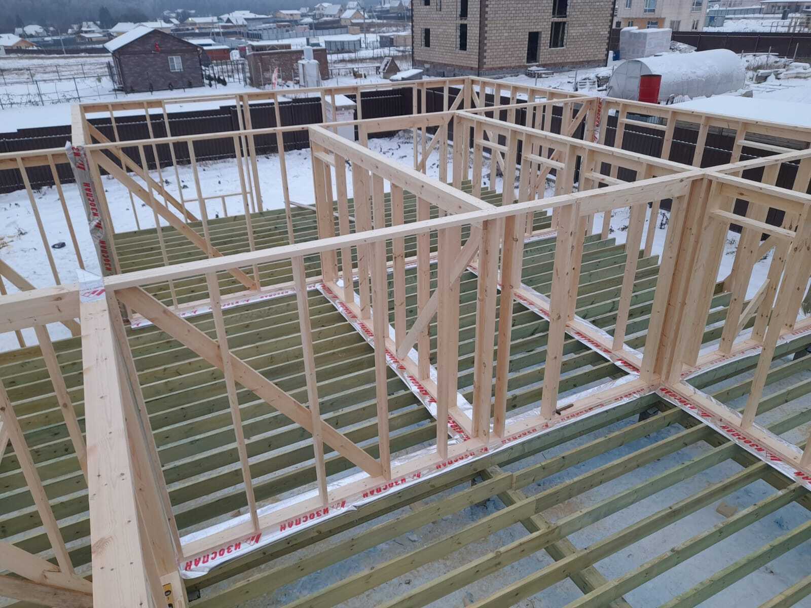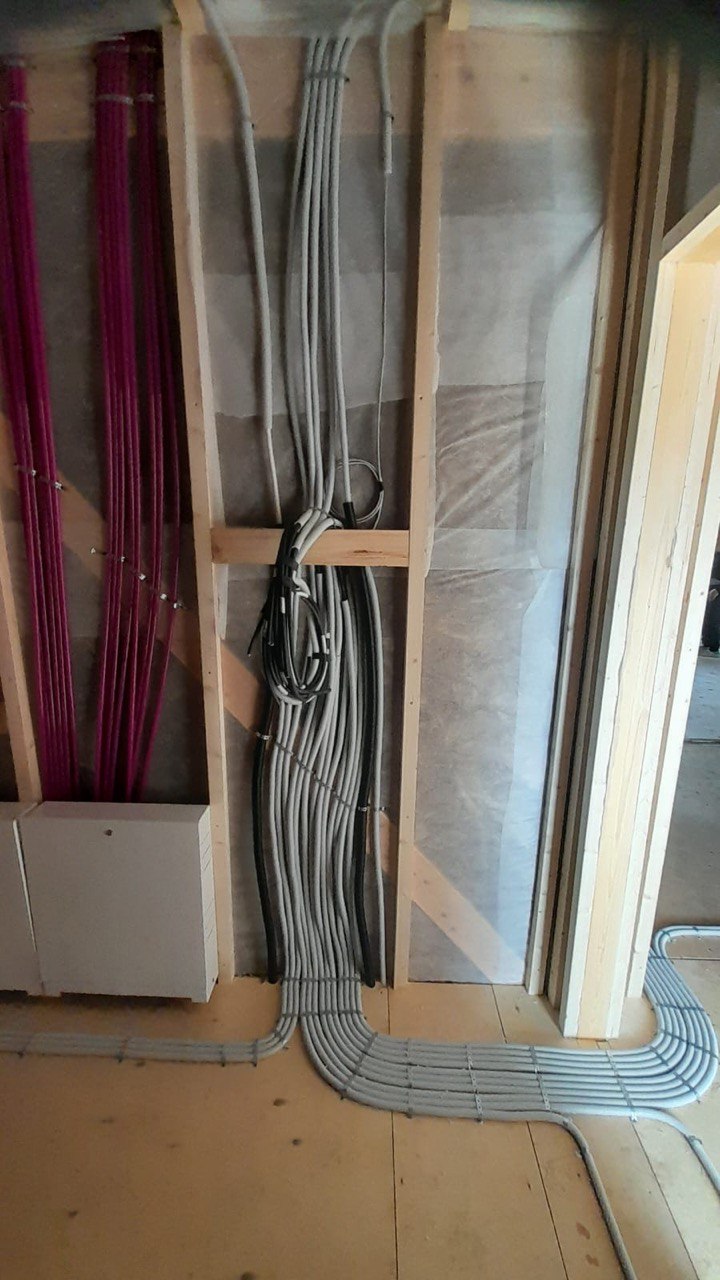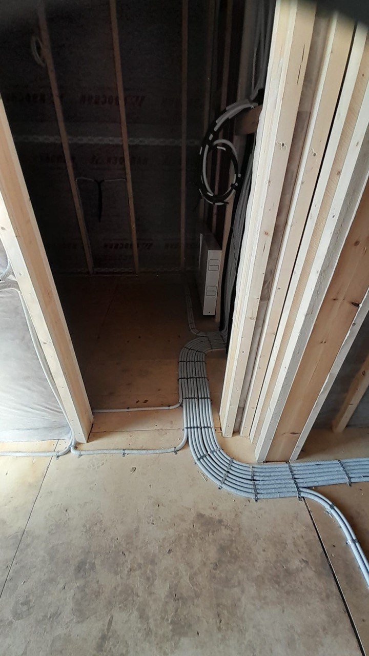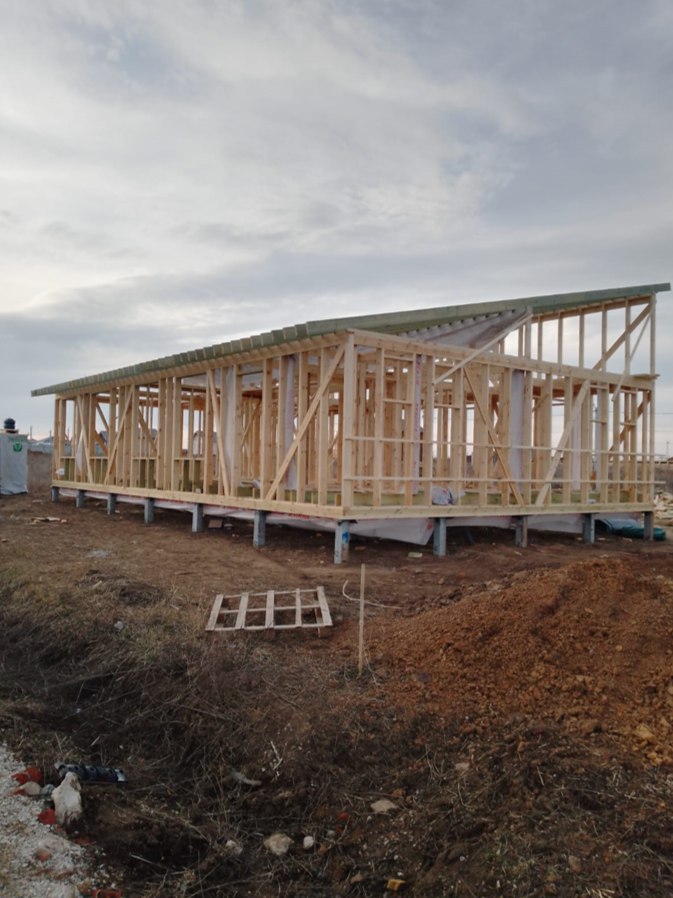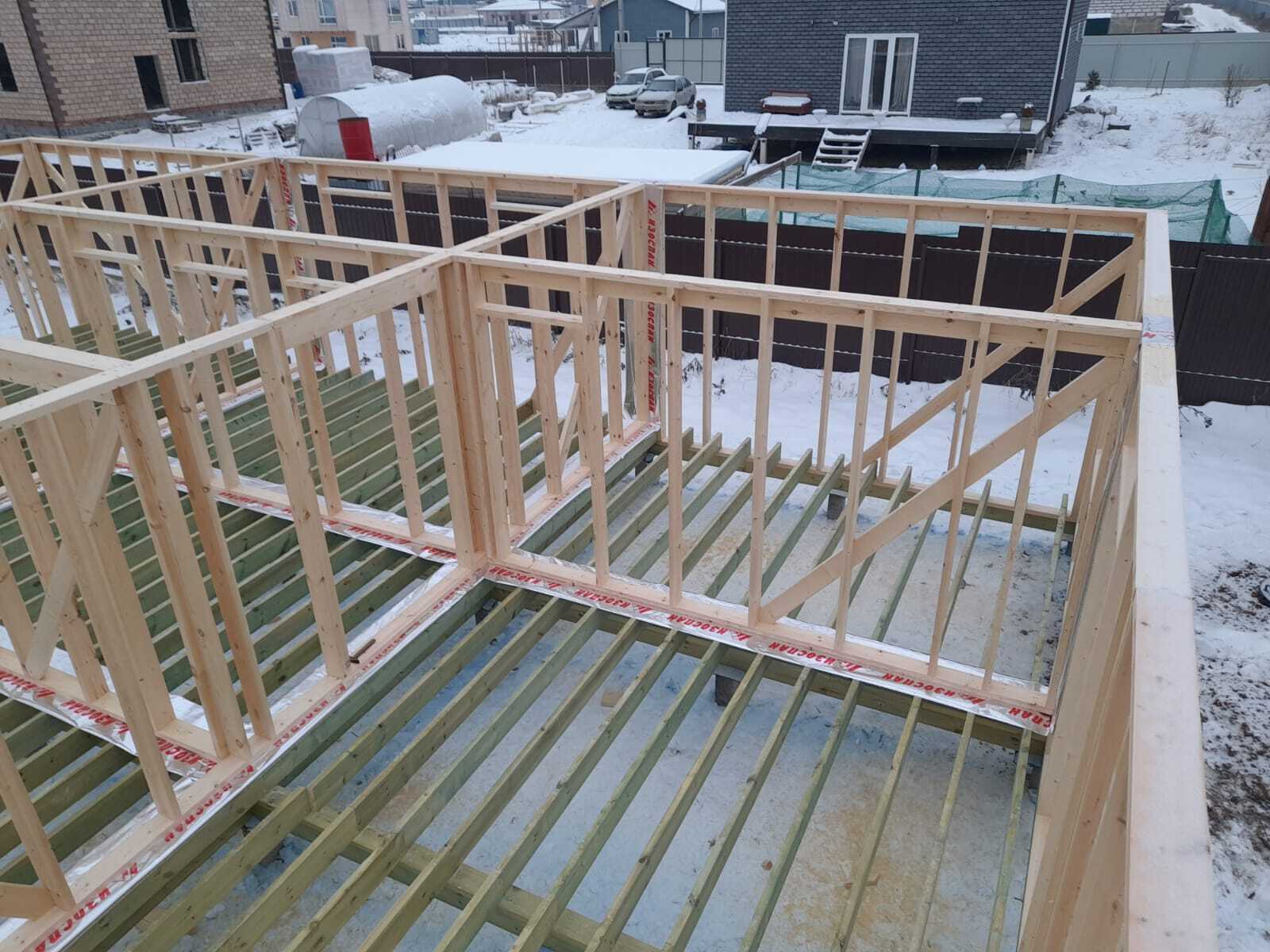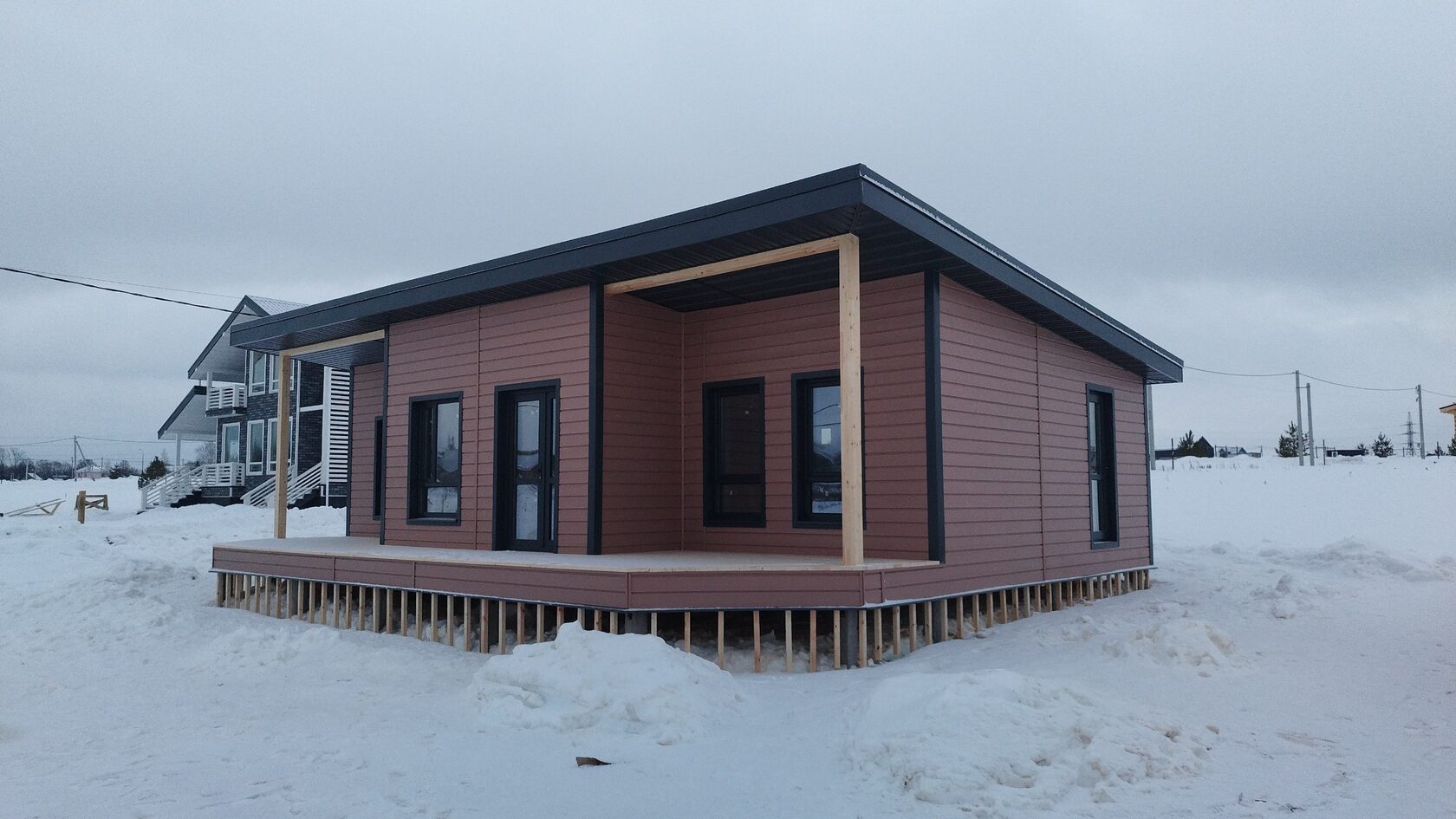 Необходимо было спроектировать дом по типу "Дуплекс" (дом на две семьи), но одна часть жилая, а вторая для работы творческой мастерской. Итог проектирования и строительства в фотоотчёте. Размер: 11,5.0х15.0 Силовой каркас дома: калиброванная доска камерной сушки. Фундамент: ЖБ сваи. Кровля: металлочерепица 0,5мм. Изделия ПВХ: Мелке. Утепление Кнауф: пол 250мм, стены и потолок 200мм. Отделка фасада: HAUBERK коллекция Кирпич, цвет: серо-бежевый. Отделка внутри: Имитация Бруса. Инженерные коммуникации: скважина с обустройством, септик, разводка воды и канализации внутри дома. Все работы произведены за три календарных месяца.
