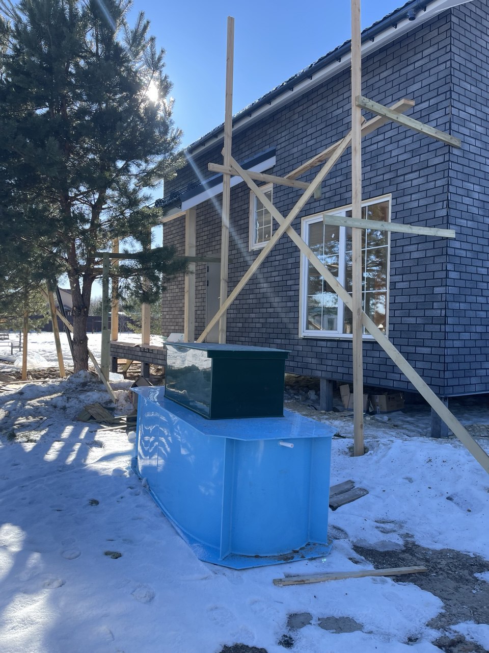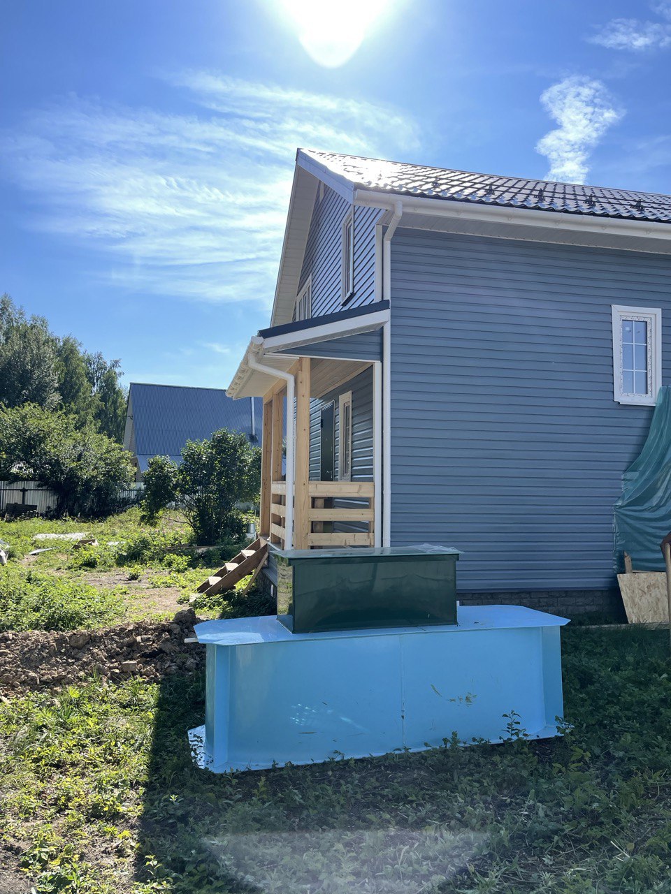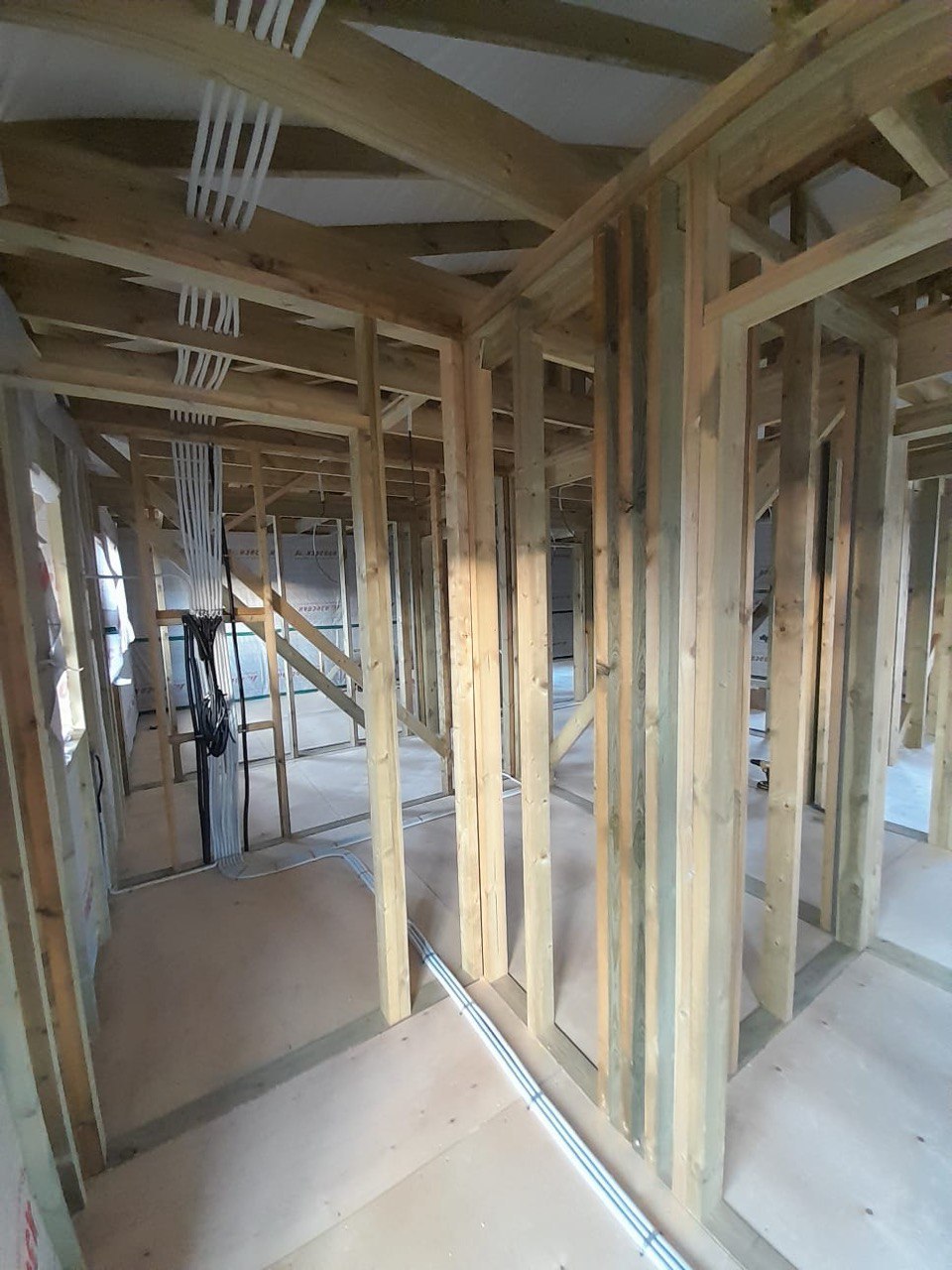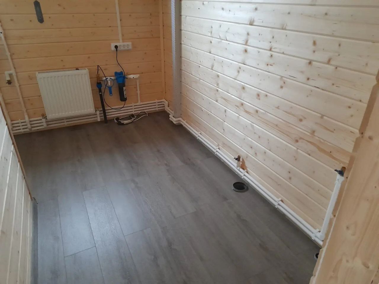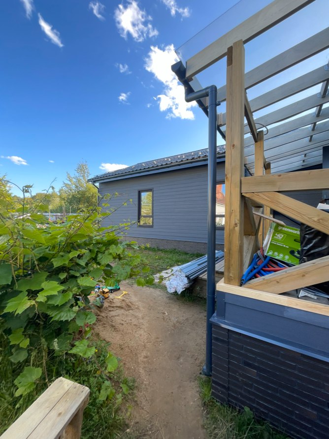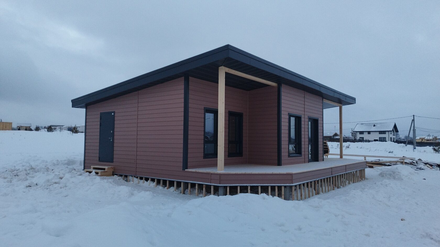 Необходимо было спроектировать дом по типу "Дуплекс" (дом на две семьи), но одна часть жилая, а вторая для работы творческой мастерской. Итог проектирования и строительства в фотоотчёте. Размер: 11,5.0х15.0 Силовой каркас дома: калиброванная доска камерной сушки. Фундамент: ЖБ сваи. Кровля: металлочерепица 0,5мм. Изделия ПВХ: Мелке. Утепление Кнауф: пол 250мм, стены и потолок 200мм. Отделка фасада: HAUBERK коллекция Кирпич, цвет: серо-бежевый. Отделка внутри: Имитация Бруса. Инженерные коммуникации: скважина с обустройством, септик, разводка воды и канализации внутри дома. Все работы произведены за три календарных месяца.