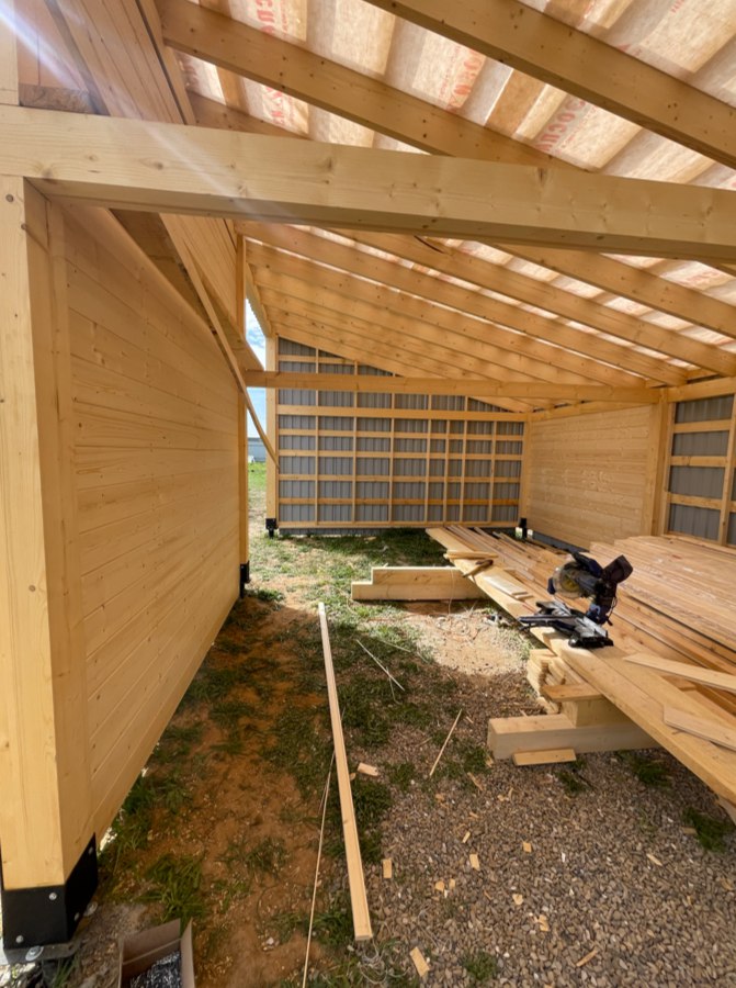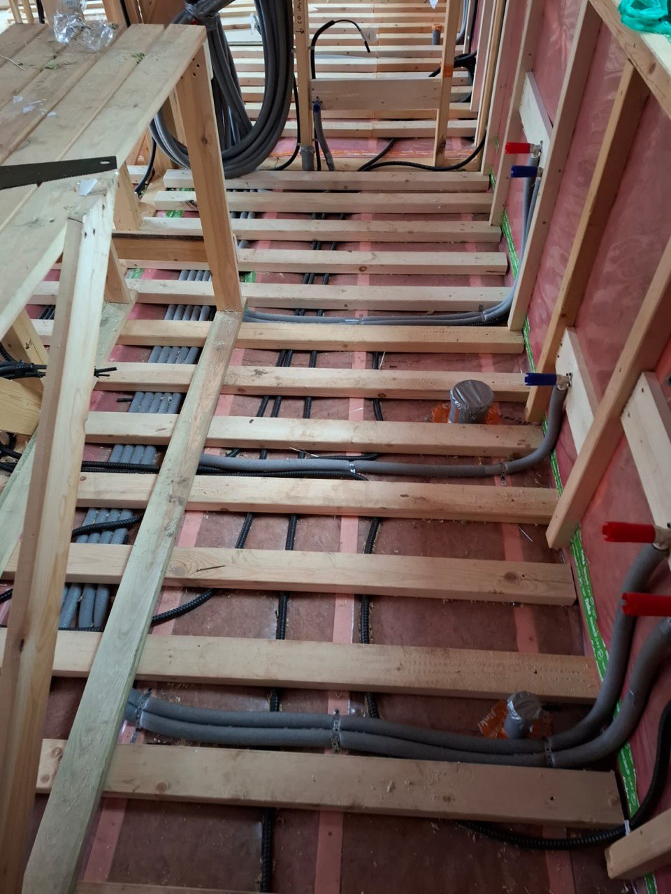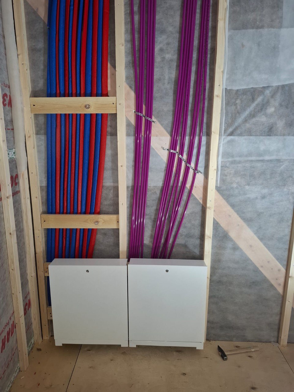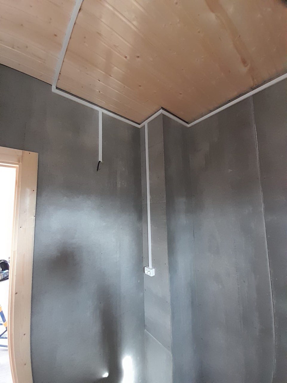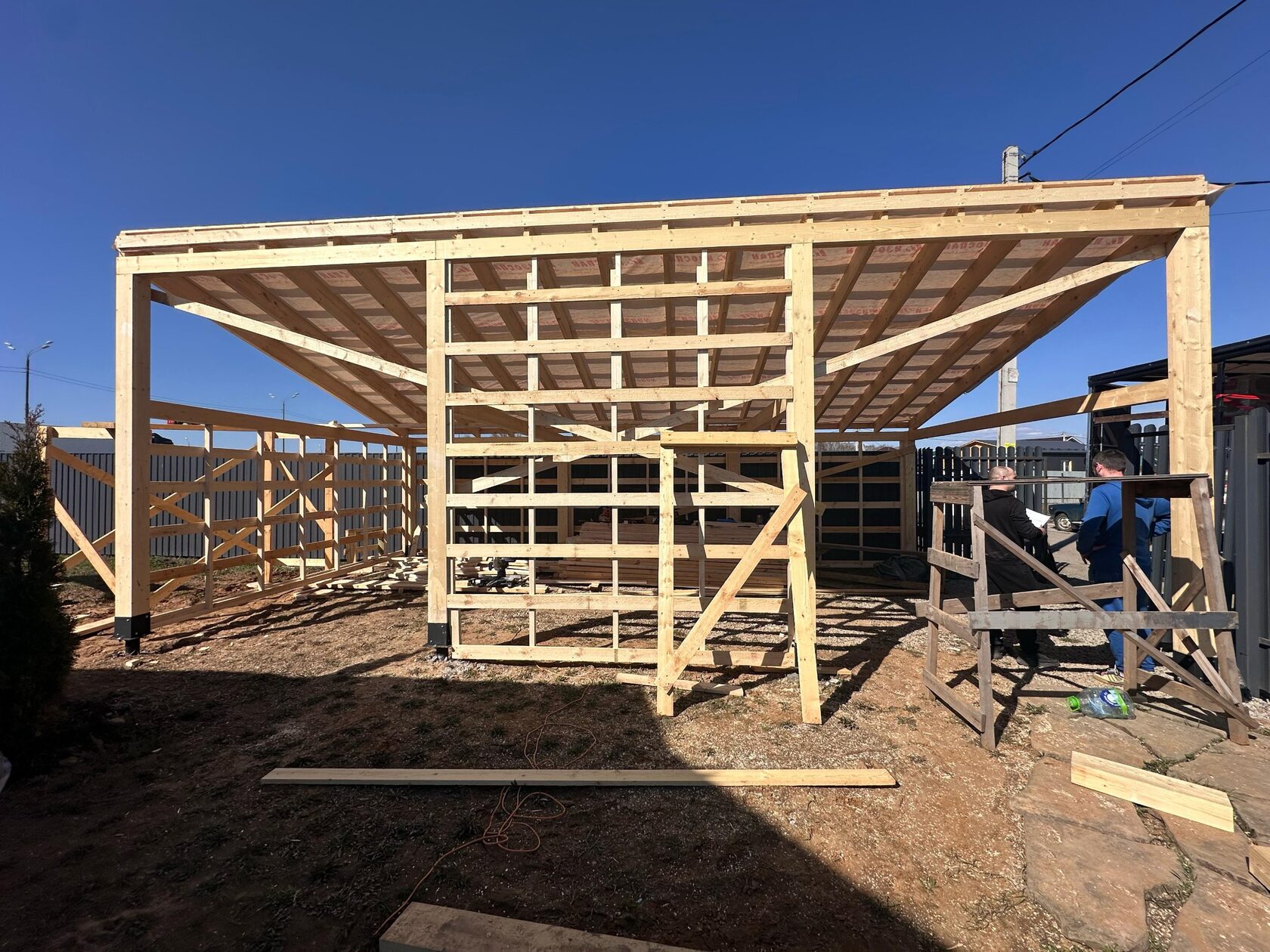 Необходимо было спроектировать дом по типу "Дуплекс" (дом на две семьи), но одна часть жилая, а вторая для работы творческой мастерской. Итог проектирования и строительства в фотоотчёте. Размер: 11,5.0х15.0 Силовой каркас дома: калиброванная доска камерной сушки. Фундамент: ЖБ сваи. Кровля: металлочерепица 0,5мм. Изделия ПВХ: Мелке. Утепление Кнауф: пол 250мм, стены и потолок 200мм. Отделка фасада: HAUBERK коллекция Кирпич, цвет: серо-бежевый. Отделка внутри: Имитация Бруса. Инженерные коммуникации: скважина с обустройством, септик, разводка воды и канализации внутри дома. Все работы произведены за три календарных месяца.